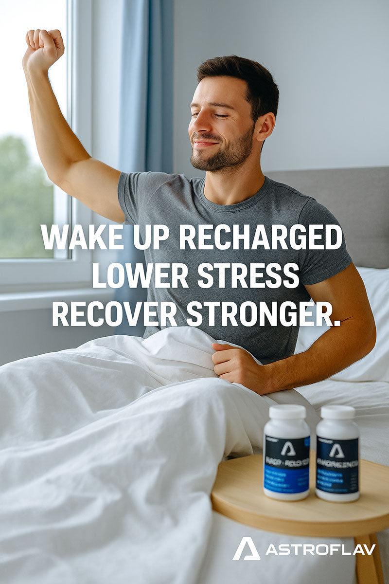 Adaptogens, amino acids, and melatonin promote deeper, more restorative sleep.